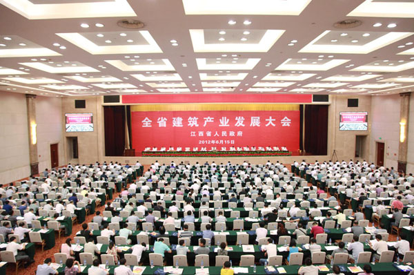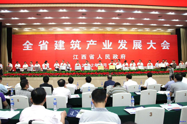 6月15日上午,江西省政府在南昌召开全省建筑产业发展大会,省政府朱虹副省长、蔡玉峰副秘书长,住房城乡建设部总工程师陈重,建设厅领导张勇等出席了会议。省直有关单位负责人,各设区市、县(市、区)政府分管领导和建设局(建委)主要负责人,全省特、一级建筑企业和受表彰建筑企业,部分勘察设计单位、监理单位负责人近600人参加会议。