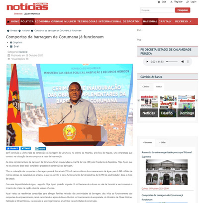 AGJACKPOT资讯经过一千多天夜以继日的辛勤努力,集设计、制造、施工于一体的莫桑比克Corumana大坝项目终于迎来了竣工的喜悦时刻。10月29日,莫桑比克总统纽西阁下亲临现场,为项目揭牌剪彩。